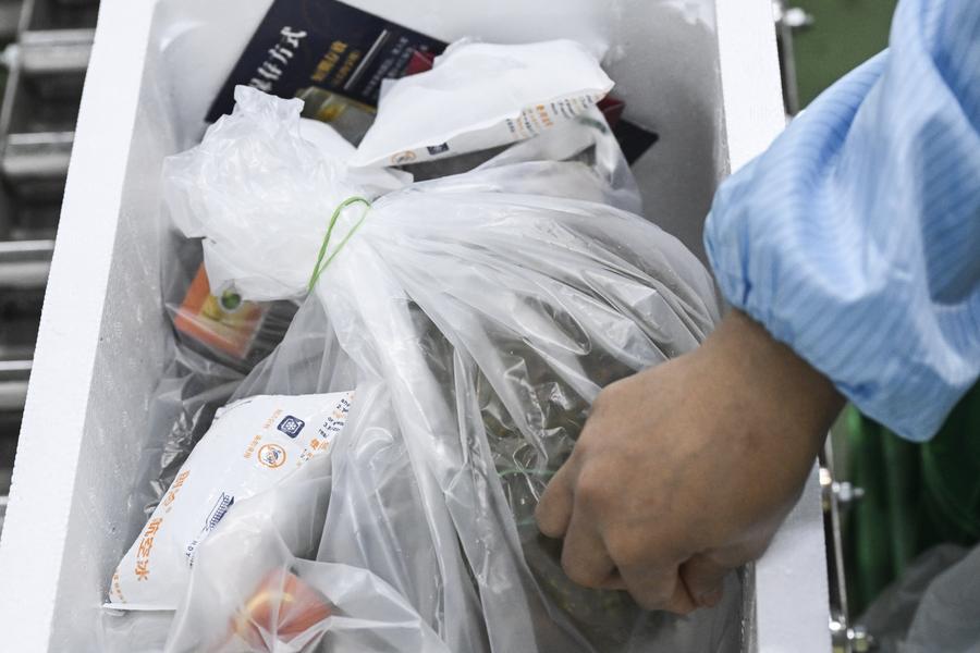 2025年10月17日,工作人员在中国南方广东省广州市一家水果经销商的运营中心工作。(新华社/邓华)