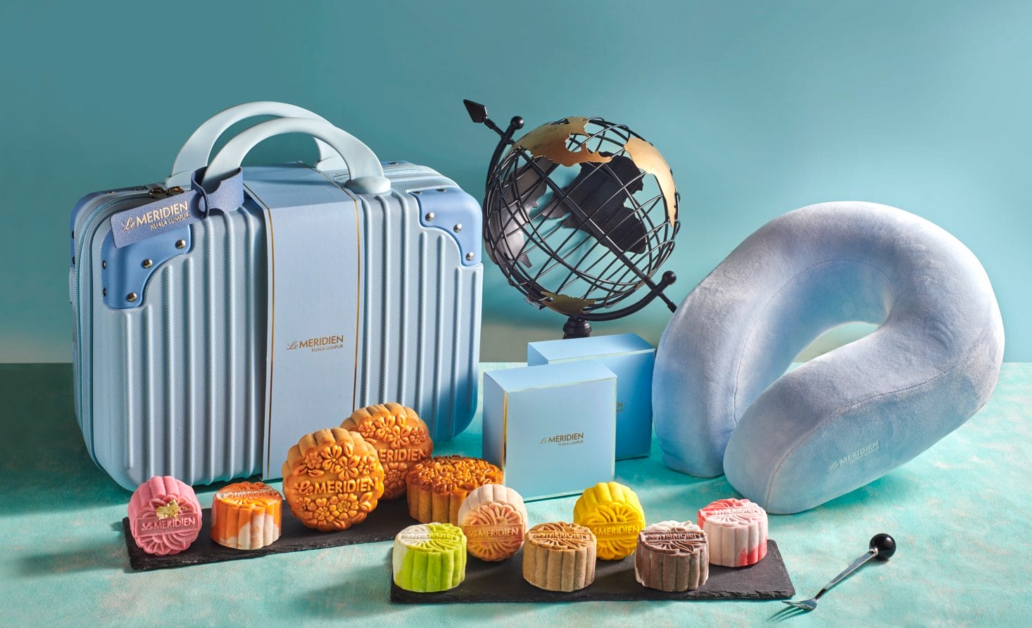 该系列包括经典烤月饼和精选冰皮月饼,有含酒和不含酒两种选择。每款月饼都装在时尚的旅行袋中,配有行李标签、用于系行李箱的松紧带以及毛绒品牌旅行枕,以增加舒适度。