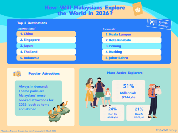 在当地,马来西亚人正忙于国内和地区旅行。吉隆坡、亚庇、槟城、古晋和新山位居国内目的地榜首,而中国、新加坡、日本、泰国和印度尼西亚则领先海外预订目的地。