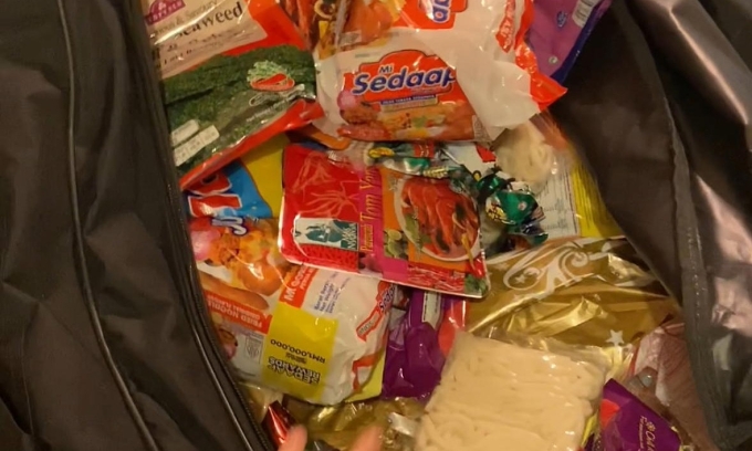 然后,她解开了袋子,以揭开令人印象深刻的马来西亚零食,包括糖果,饼干,瞬间面条,甚至是汤姆·尤姆(Tom Yum)粉。在她的牵引中,当地的最爱,例如Fruit Plus和Kopiko Candy,Tao Kae Noi Seaweed,Milo Powder,Goldfish Crackers,Mi Sedaap Instant Noodles和17包Mak Nyonya Tom Yum Paste。