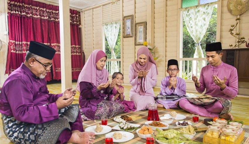 穆斯林家庭饭前祈祷